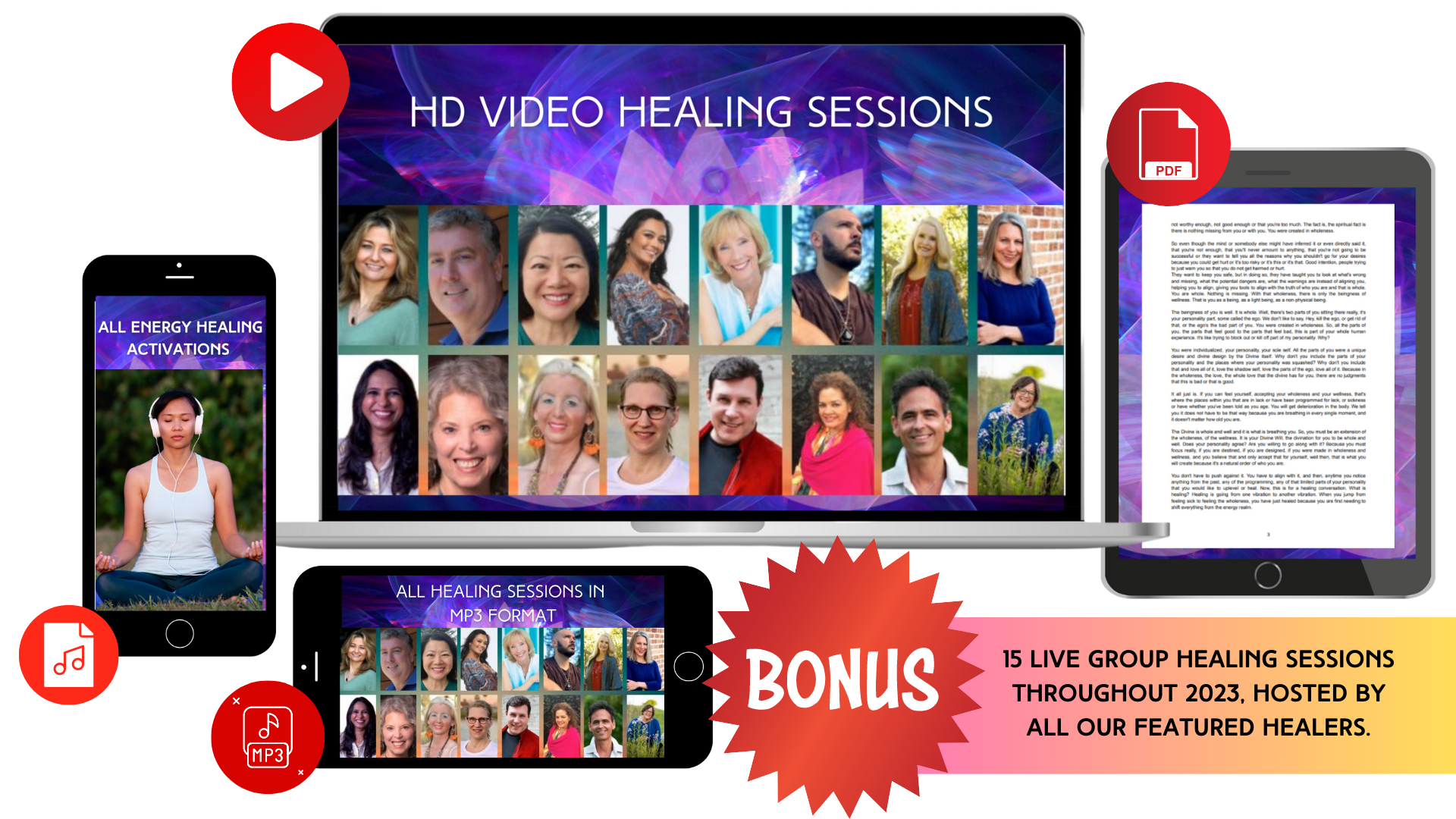 BONUS 2: 15 LIVE Group Healing Sessions Throughout 2023, Hosted By All Our Featured Healers