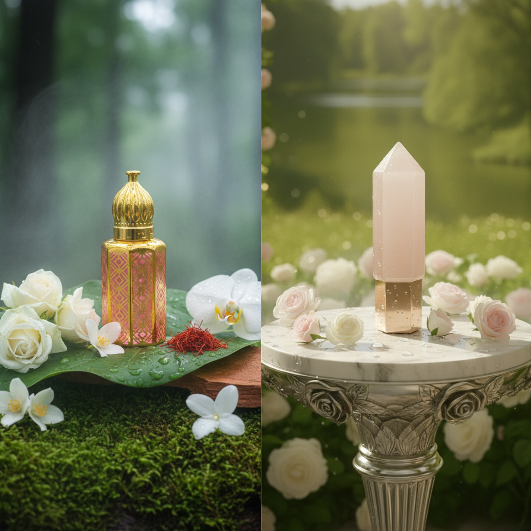 - Your perfume comes in a gorgeous, hand carved Rose Quartz Crystal Bottle